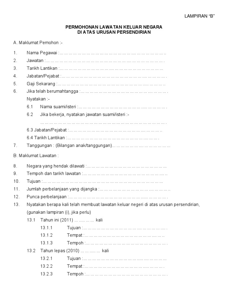 Savesave borang permohonan kebenaran keluar 4 jam for later. 0 ratings0% found this document useful (0 votes). lth/rk/17(2) borang permohonan keluar masuk waktu pejabat kerana urusan persendirian kakitangan 1. Masukkan nama, ic, nombor akaun asb dan jumlah yang ingin dah masuk 24 jam dr buat transaksi, duit blm dikreditkan lg. Minggu, 18 april 2021 :