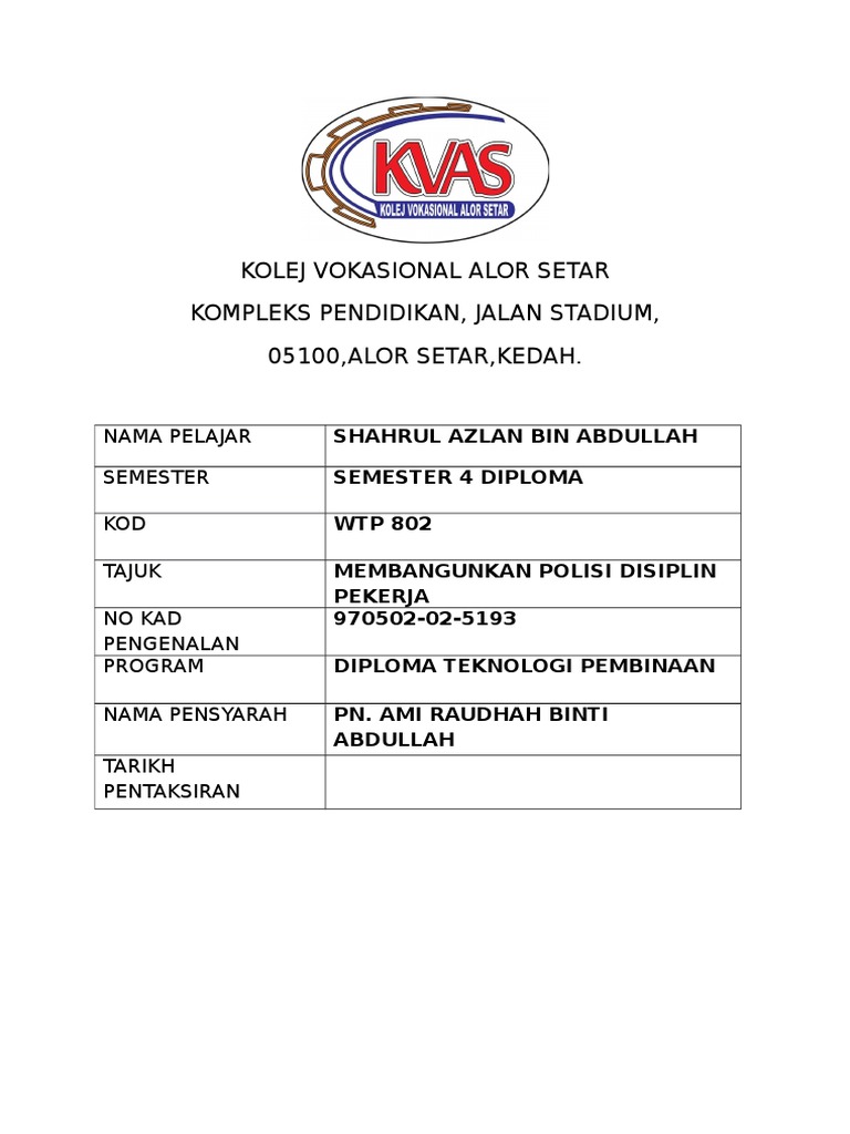 Come and see on my fb. Mengatakan yg sya ada temubual dia kv alor setar utk k.t electrik. Kv merupakan institusi pengajian yang menerapkan pembelajaran. Permohonan kolej vokasional (kv) bagi ambilan januari 2020 telah pun dibuka. الور ستار), known as alor star from 2004 to 2008, is the state capital of kedah, malaysia. Documente similare cu kolej vokasional alor setar. Lot 17, stadium darul aman, jalan stadium, kedah, taman mahkota, 05100 alor setar, kedah, malaisia. Graduan kolej vokasional berpeluang untuk ke ipta, ipts, dan institut latihan kemahiran awam dan swasta, atau terus ke alam pekerjaan. Sekolah vokasional atau kolej vokasional merupakan sekolah ataupun kolej yang menawarkan latihan kemahiran berbanding tawaran akademik. Facebook rasmi bagi kolej vokasional alor setar (kovas) maklumat serta informasi terkini bagi aktiviti yang dijalankan oleh kovas akan dimuatnaik ke dalam akaun ini. Elektrik / elektronik kimpalan logam bengkel mesin binaan bangunan pengurusan perniagaan pengaturcaraan komputer. Kolej vokasional alor setar laporan biro keceriaan aspura dan aspuri 2013. Tarikh kemasukan sekolah menengah teknik bagi pelajar tingkatan 4.